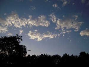 Then facing the lightening East and talking to God about each item and person I needed to place in His hands, I looked up into the peaceful sky and noticed a few clouds coming over my house from the west.